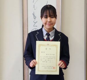 成績が優秀だったとのことで2年の蔵光紗世さんが優秀賞を受賞しました。