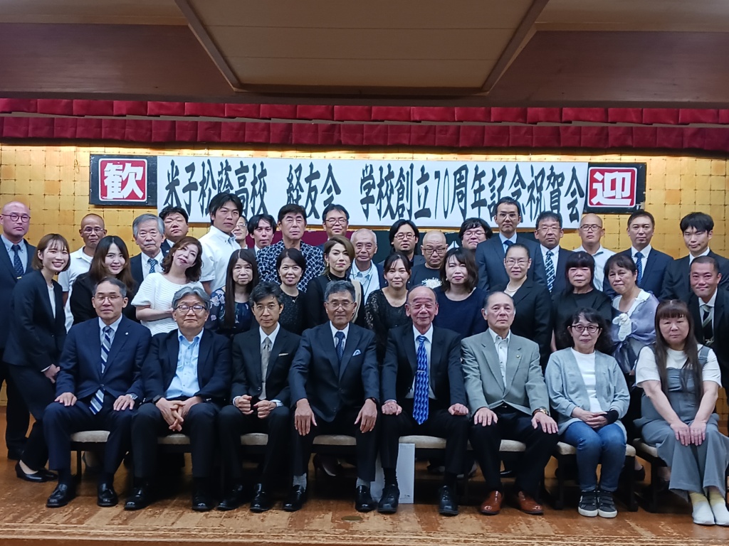 令和7年9月19日(金)18時30分より、皆生温泉三井別館にて、経友会総会・学校創立70周年記念祝賀会が開催されました。当日は約40名の会員の皆様にお集まりいただき、物故者の方々への黙祷から始まり、2024年度会計決算報告・監査報告、2025年度予算、会則の改正などの議案の審議を行いました。