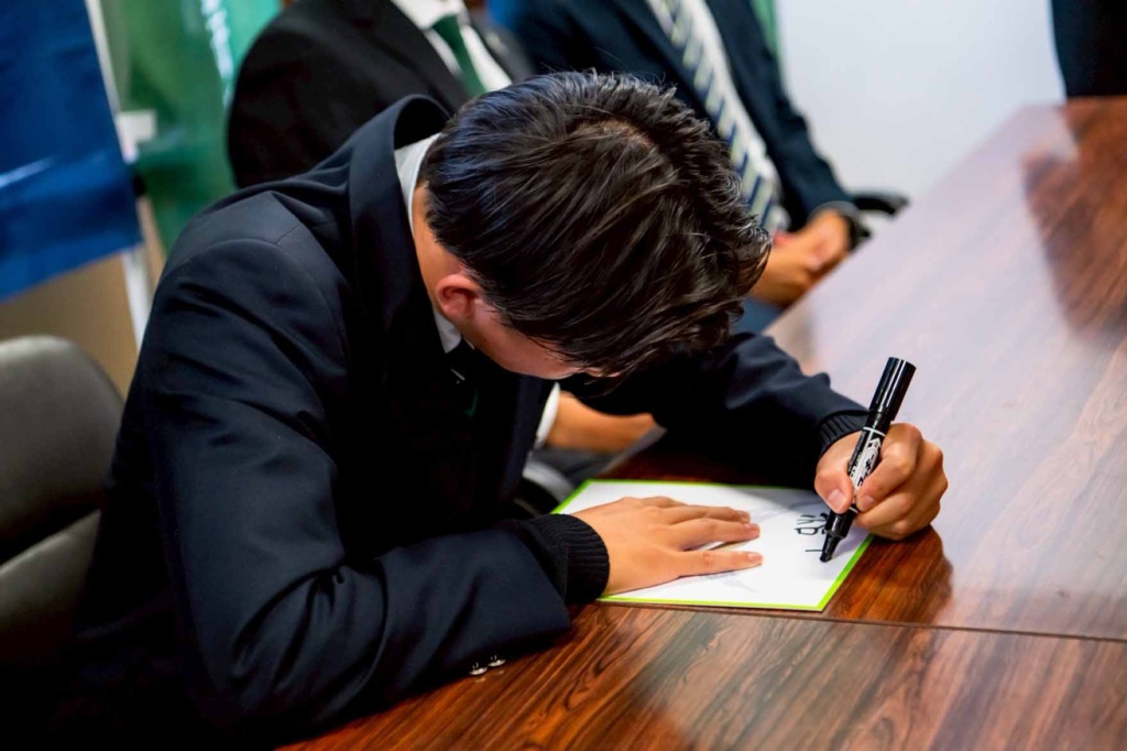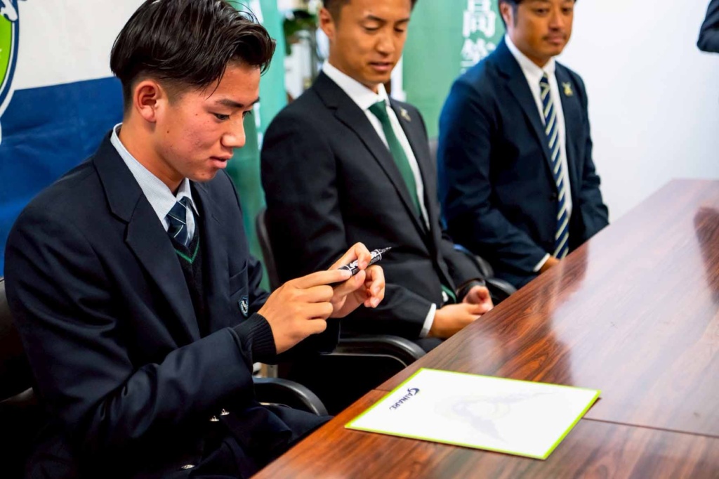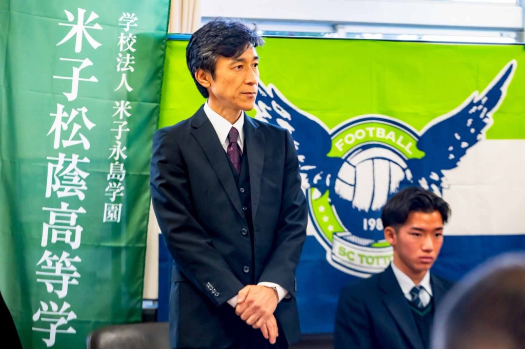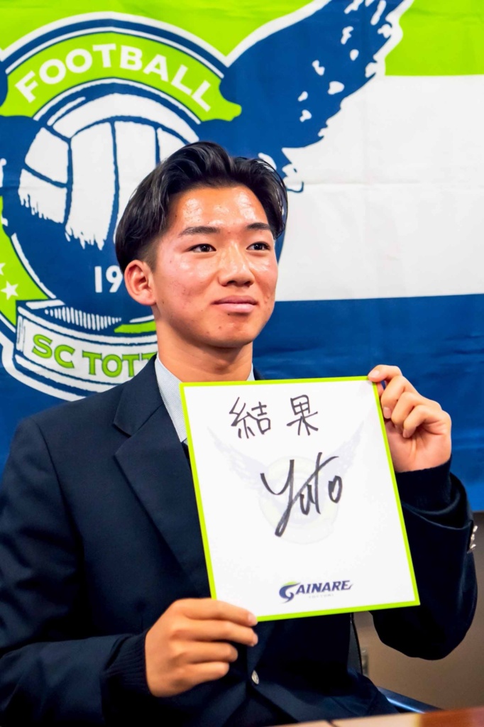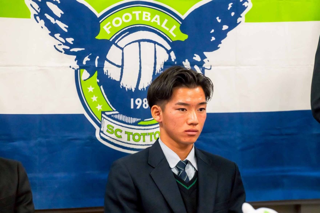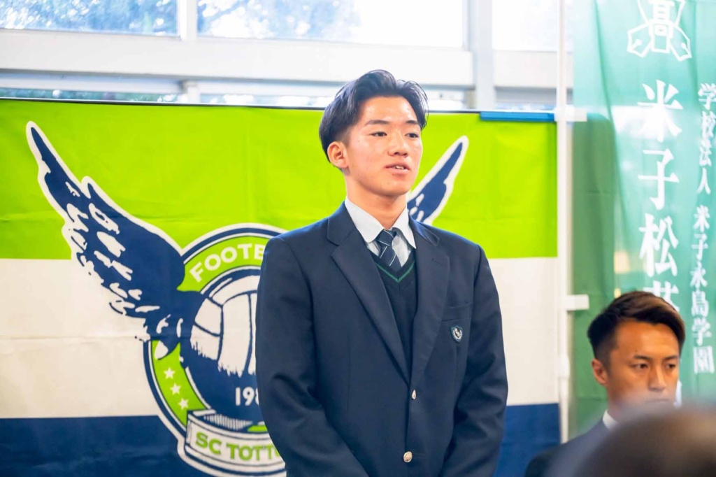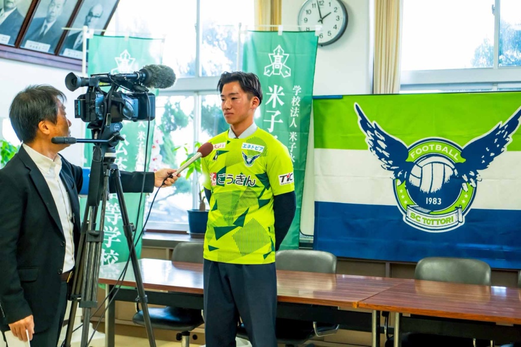 10月30日(木)、ガイナーレ鳥取U-18の所属選手である3年生の長谷川夢叶さんの、ガイナーレ鳥取トップチーム昇格発表記者会見が本校で行われました。