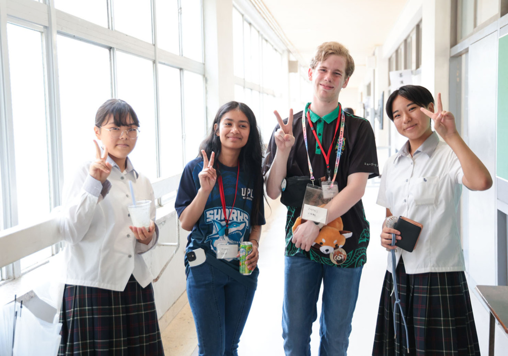 松絳祭文化の部2日目、留学生それぞれが模擬店やクラスの出し物を見て回り、日本の食べ物や文化などを味わいました。お店や展示場所などさまざまな場所で多くの松蔭生達と積極的に交流する姿が見られました。
