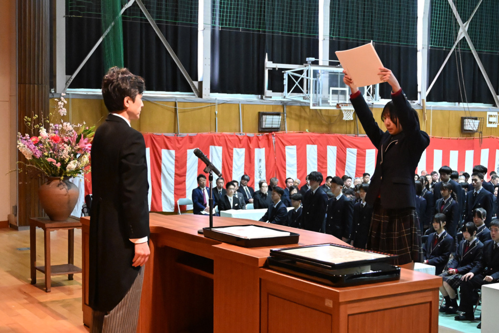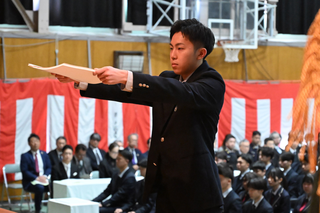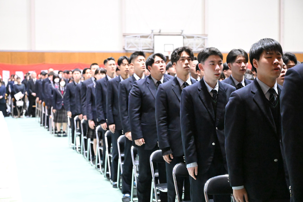 コロナ渦だった数年間、一旦は声を出すことも憚られる中で簡略化されてきた卒業式ですが、本年度の式は本校伝統の厳粛かつ盛大な式となりました。