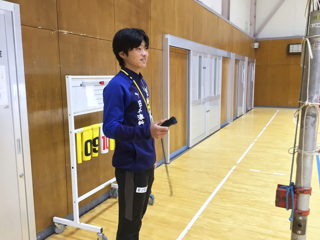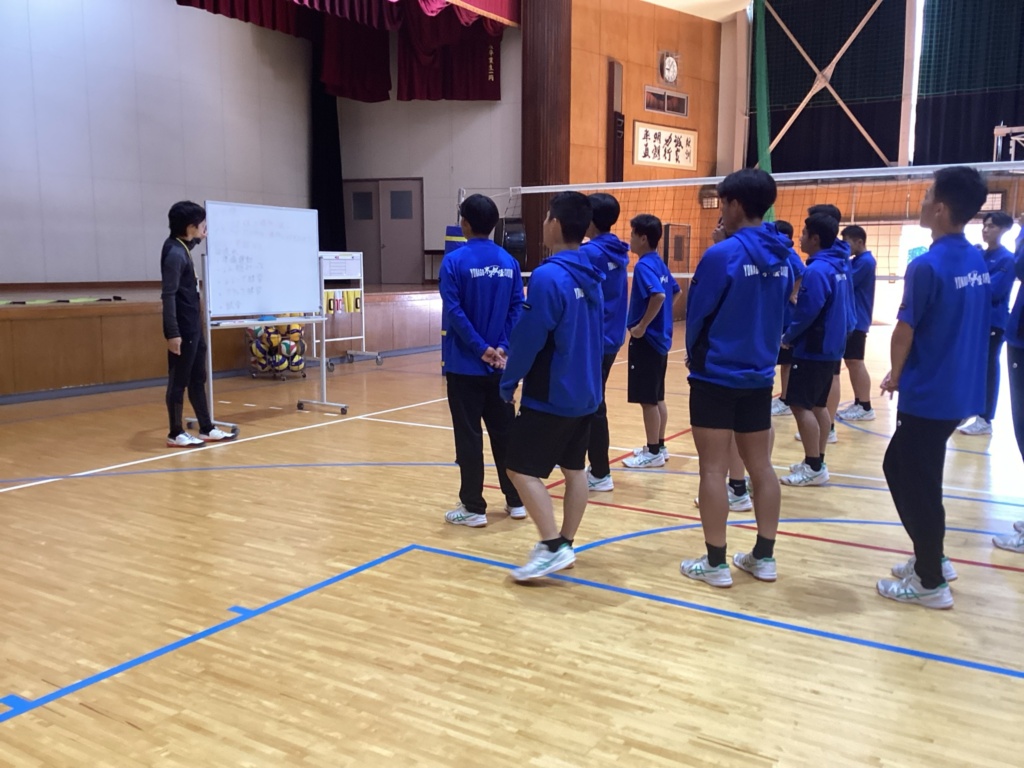 授業の目標は「レシーブを狙った場所に返し、アタックが打ちやすい場所にトスを上げ、試合で実践する」こと。