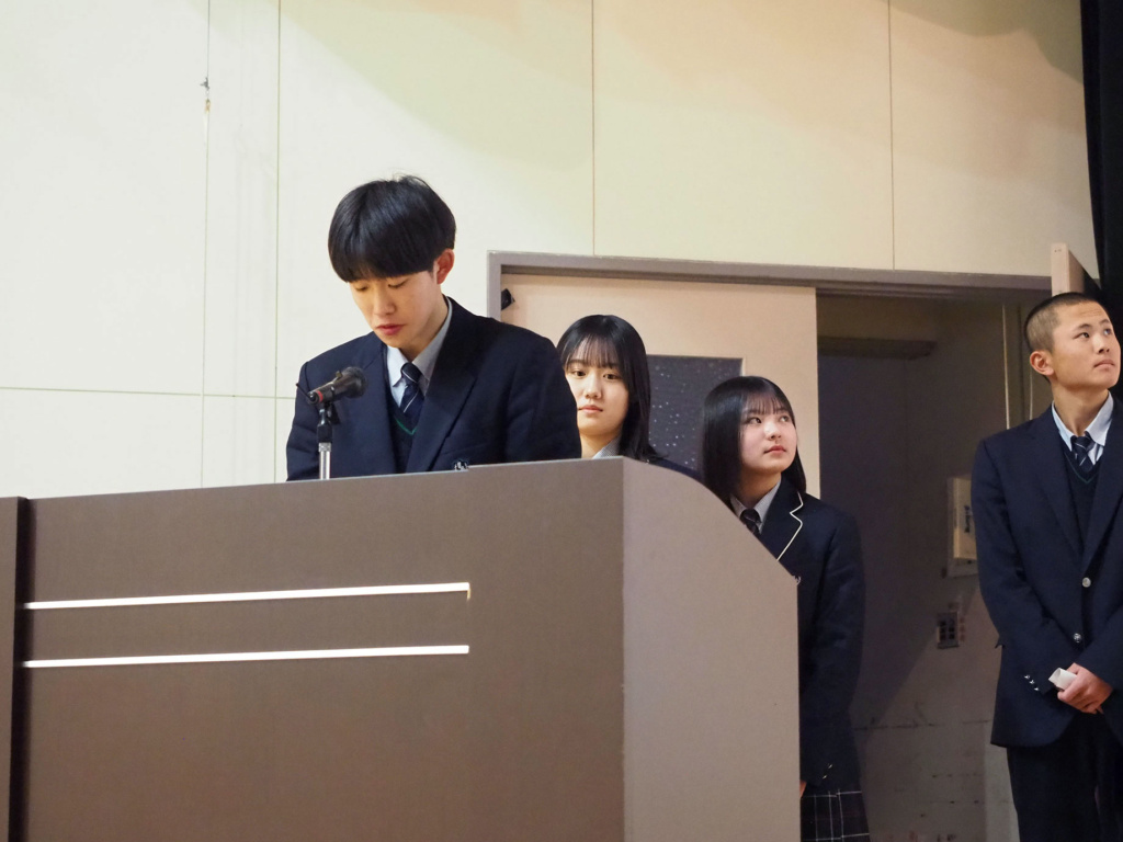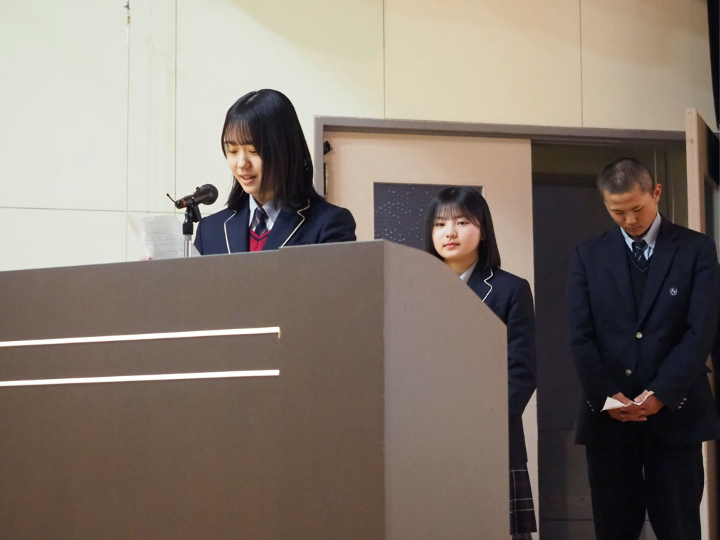 1年生の皆さんは、4月の入学から約1年間様々な方面で頑張り、仲間とかけがえのない時間を共有して米子松蔭高校の生徒として本校の魅力を実感してきたと思います。その魅力を改めて振り返ったことで、2年生になってからの学校生活もさらに充実させてくれたら素晴らしいと思っています。