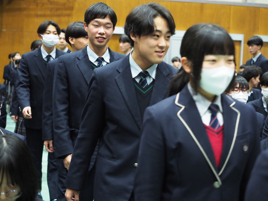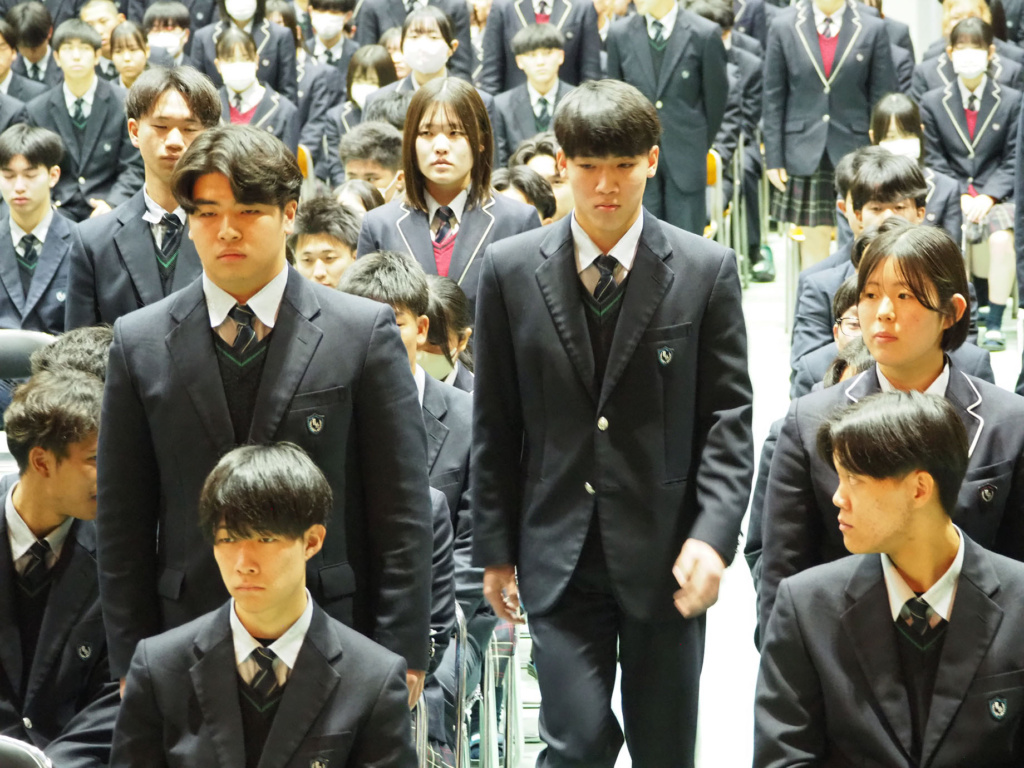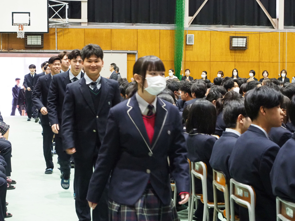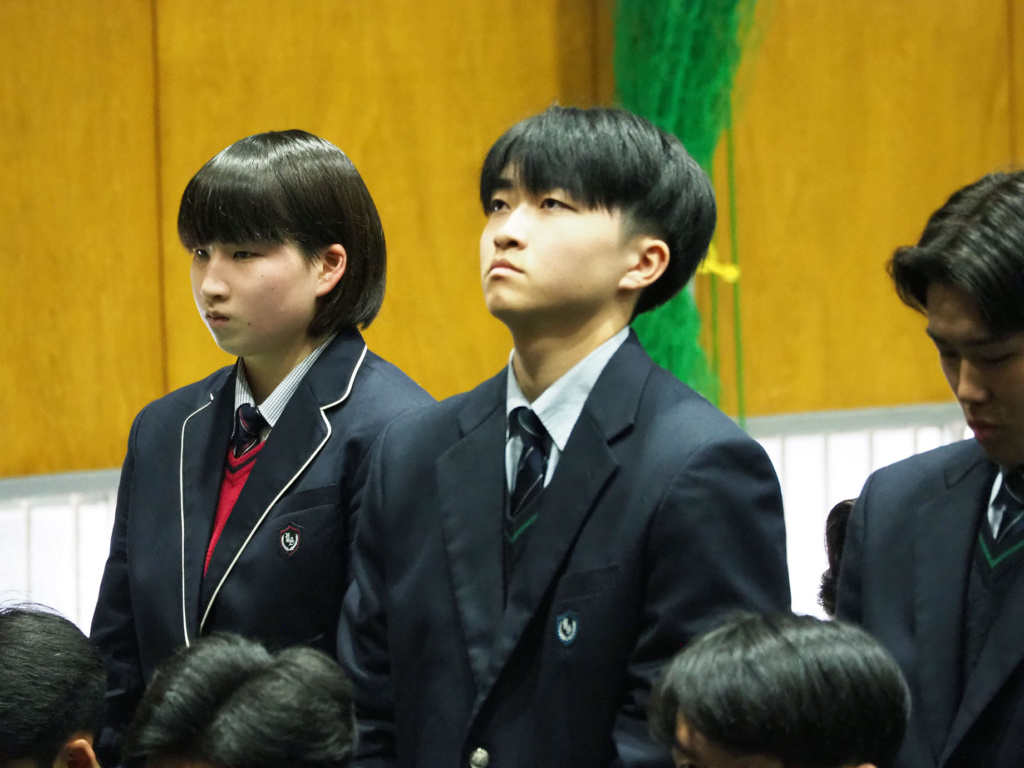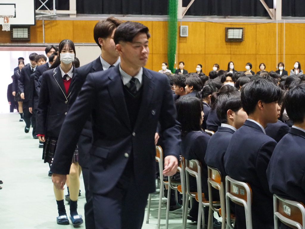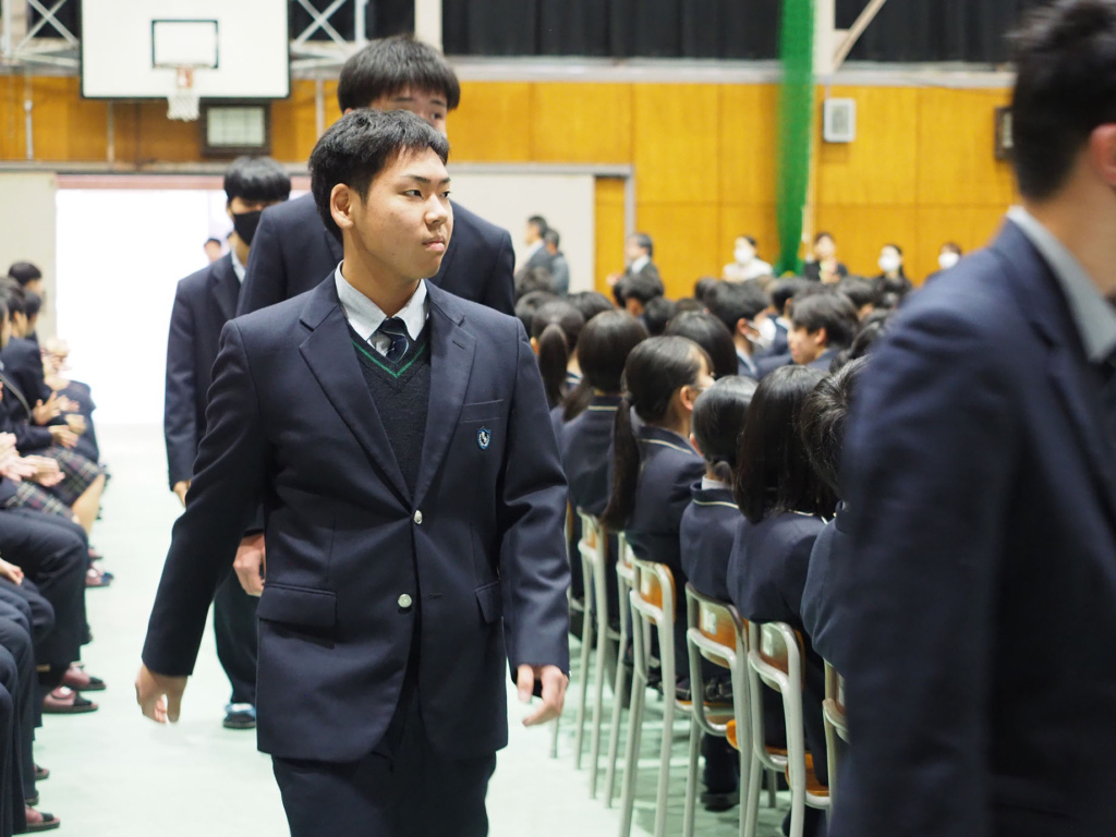 式典では、緊張感と生徒たちの凛々しい表情で、気持ちの良い静けさが漂っていました。そして、1.2年生にとっては卒業していく3年生の頼もしい背中を間近で見ることができました。