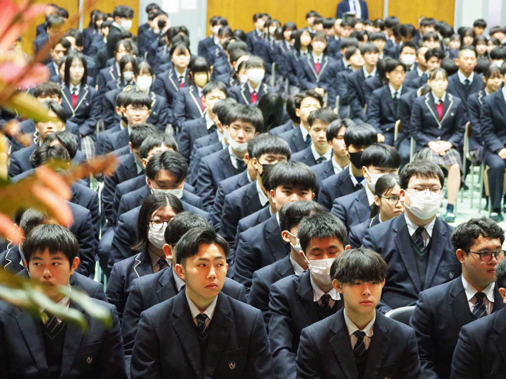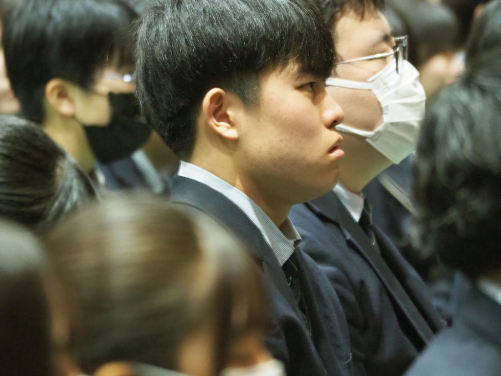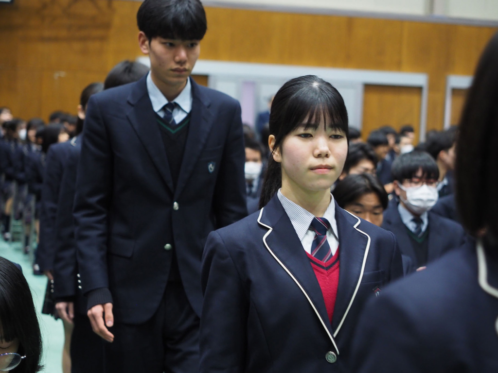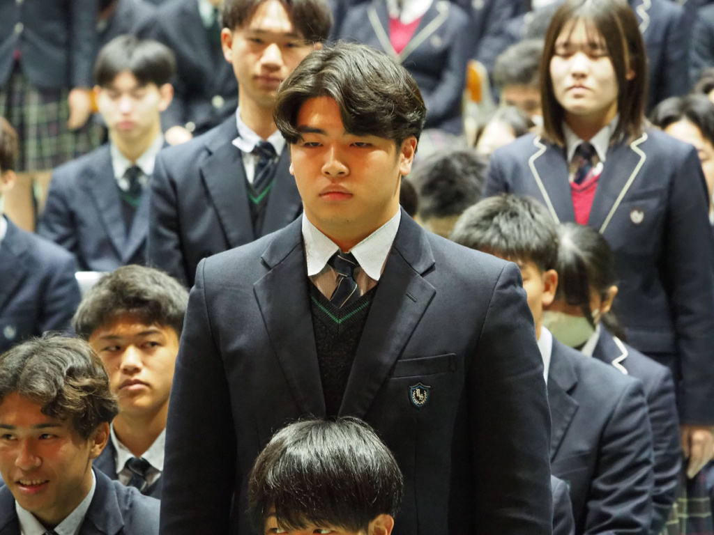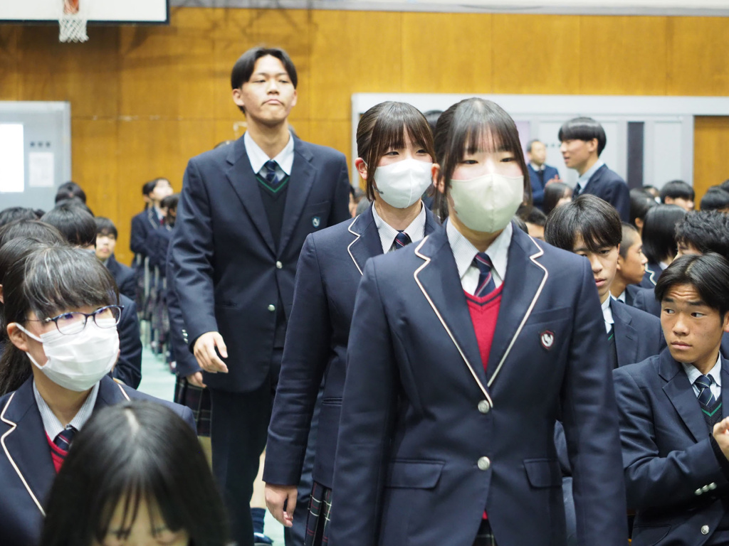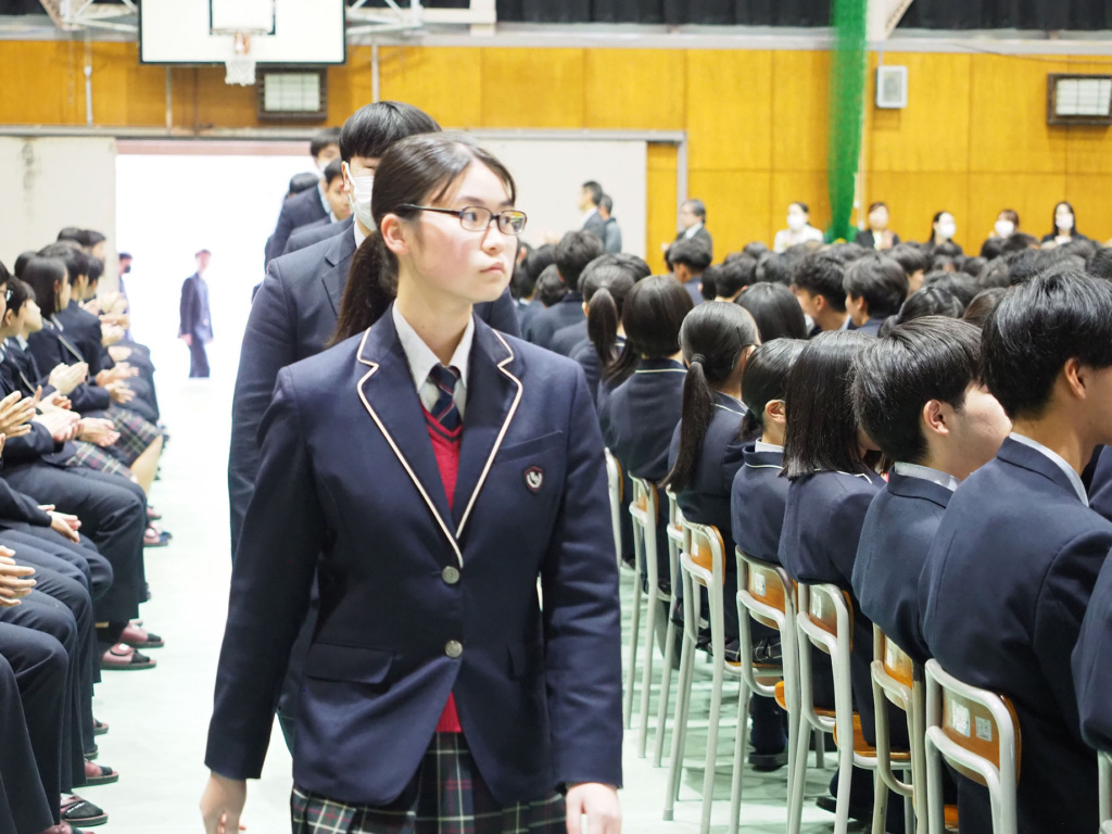 式典では、緊張感と生徒たちの凛々しい表情で、気持ちの良い静けさが漂っていました。そして、1.2年生にとっては卒業していく3年生の頼もしい背中を間近で見ることができました。