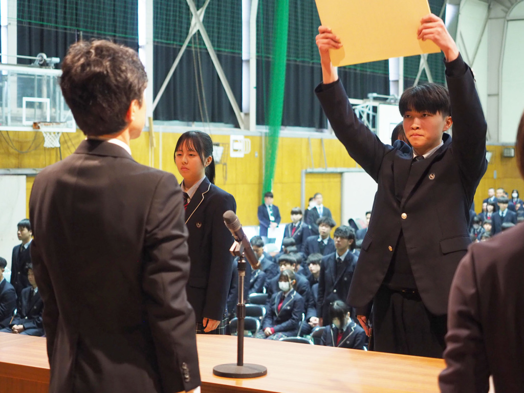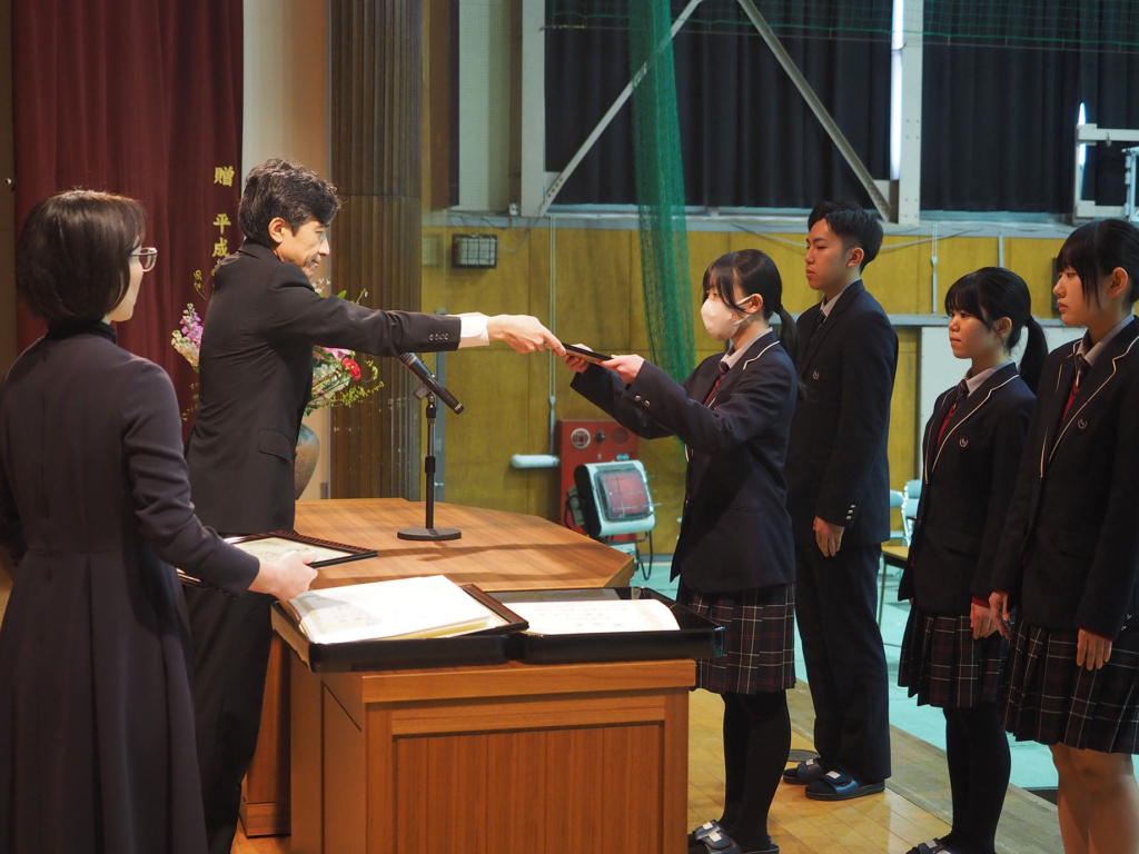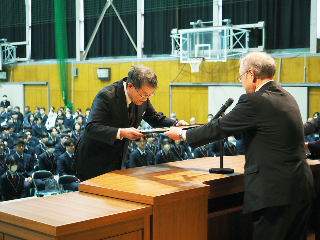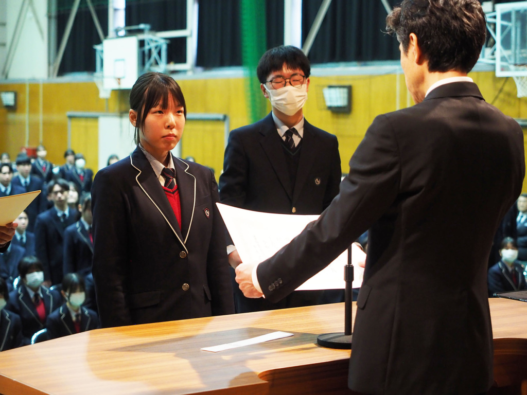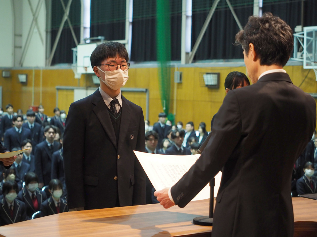 卒業を控えた3年生の3年間の功績や、1年生から3年生まで1年間の部活動における功績などが全校生徒の前で表彰されました。