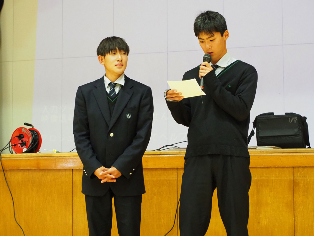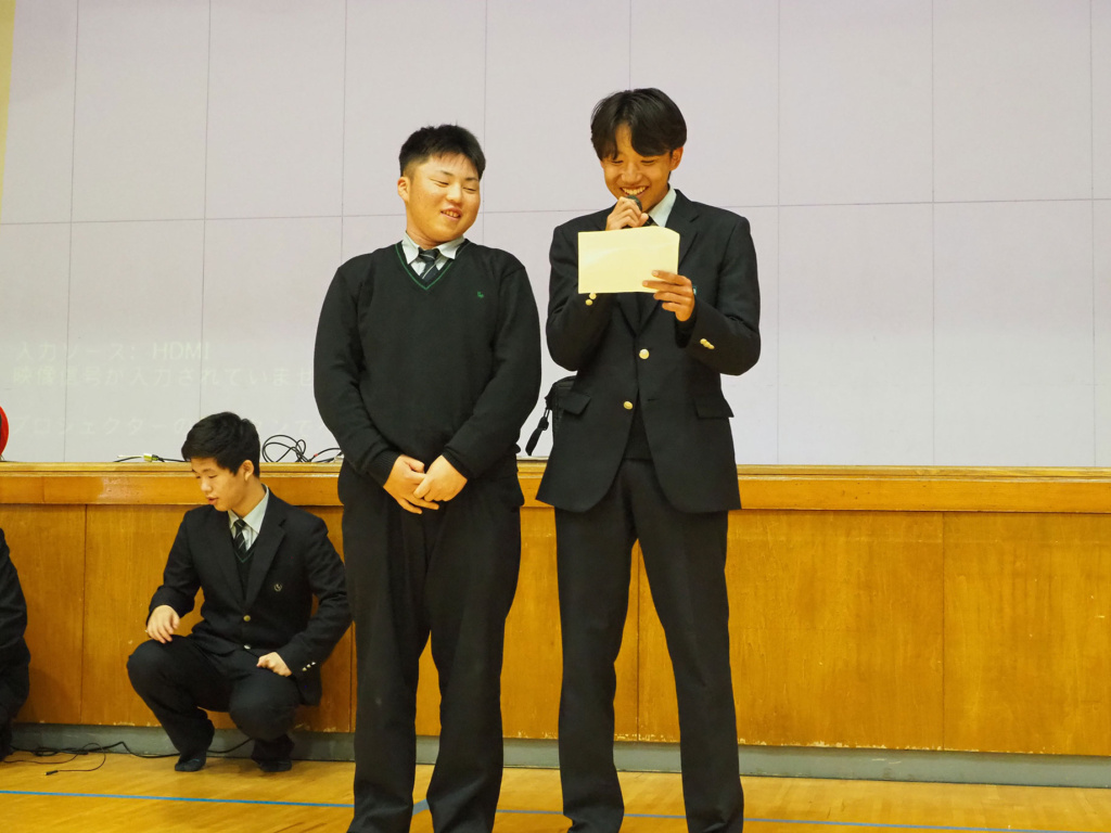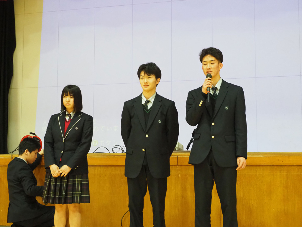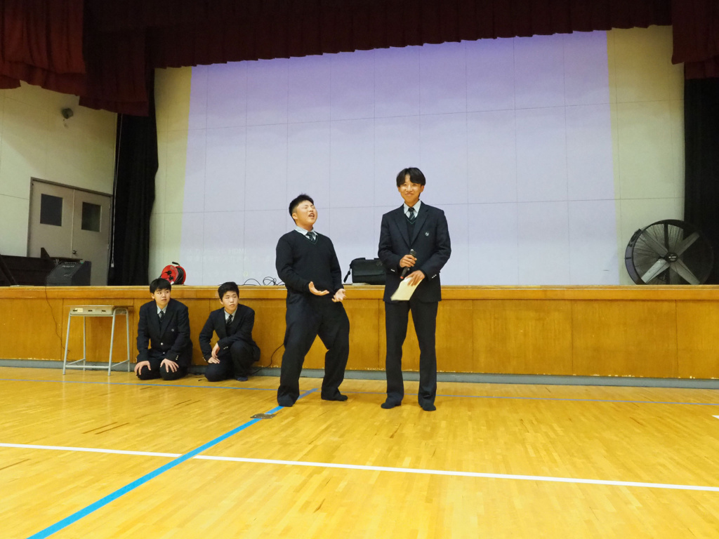 今年の部活動紹介は各部の先輩たちによるコント風の紹介や、オリジナル動画による紹介など、工夫を凝らした紹介が行われました。