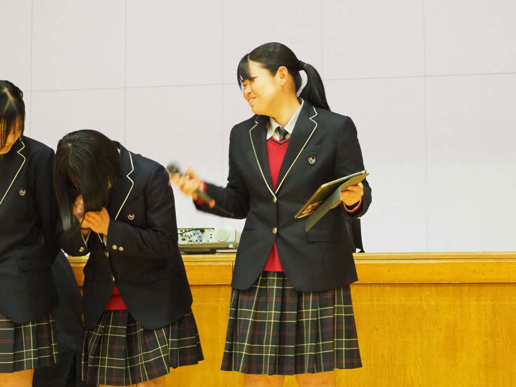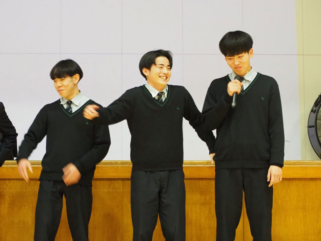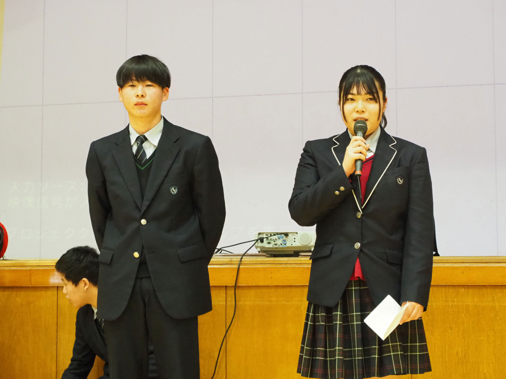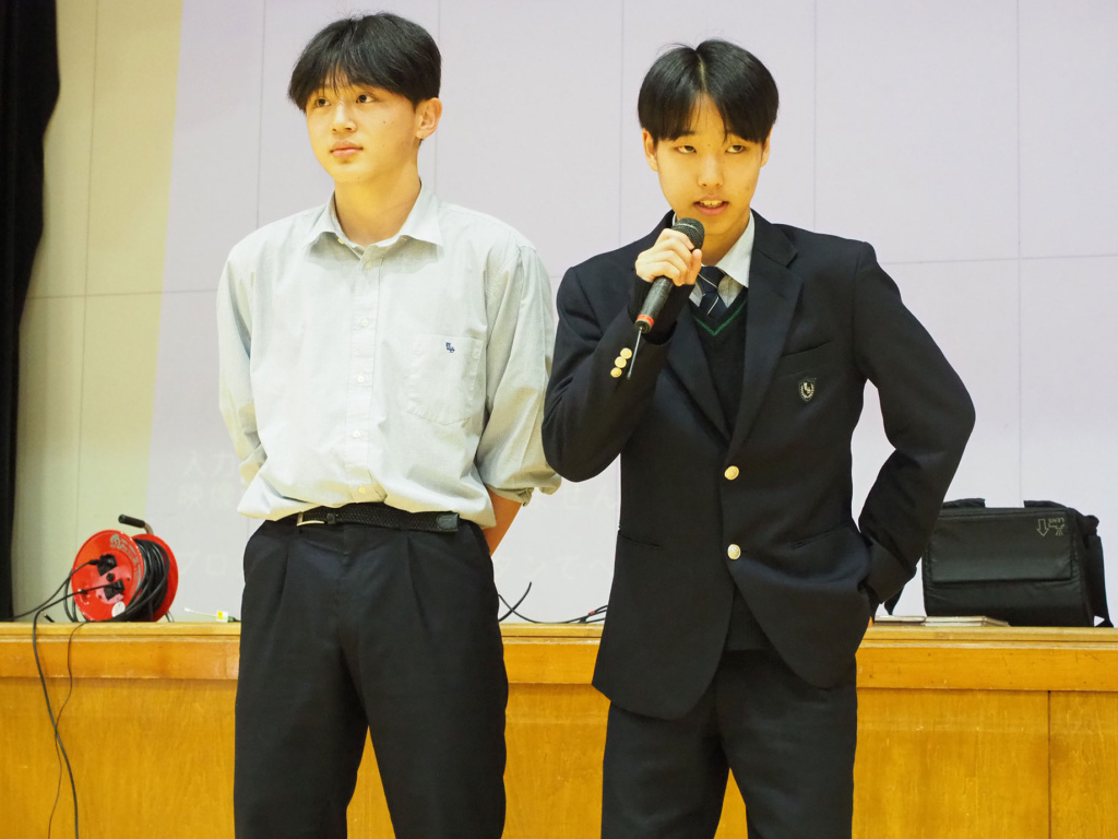 今年の部活動紹介は各部の先輩たちによるコント風の紹介や、オリジナル動画による紹介など、工夫を凝らした紹介が行われました。