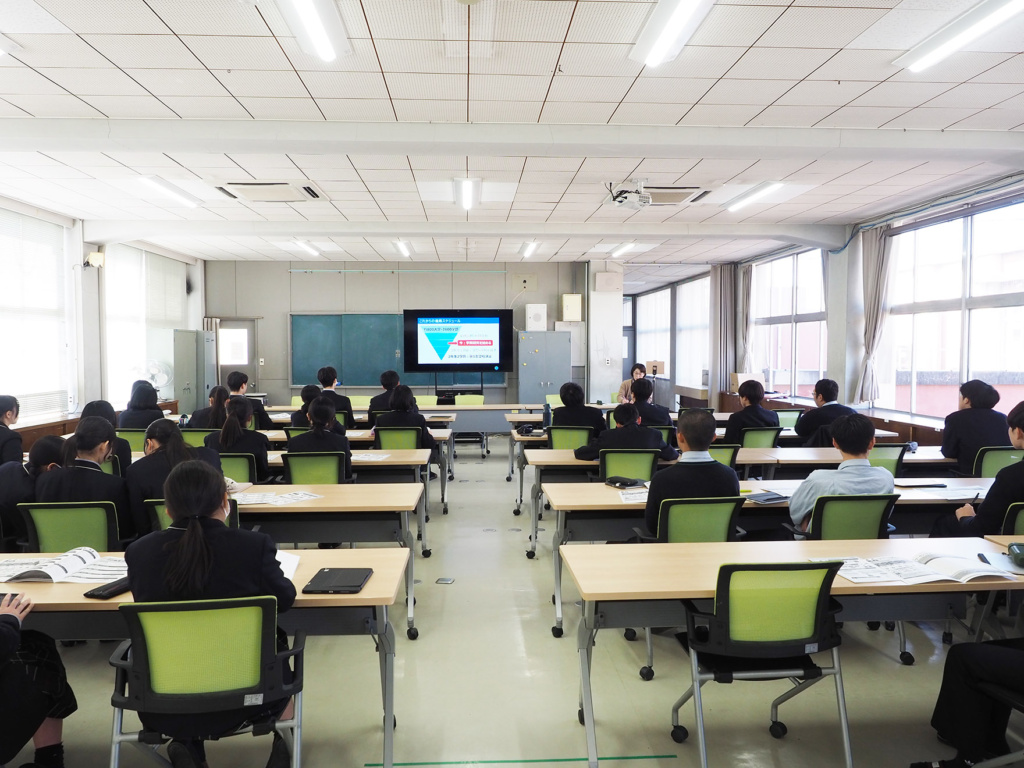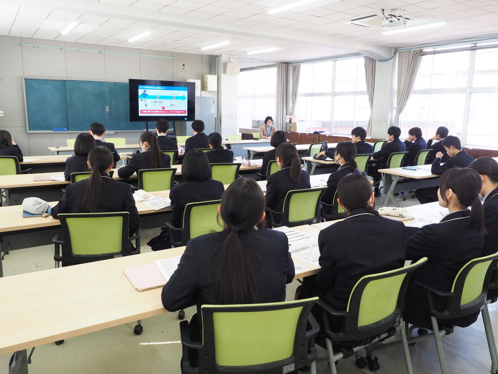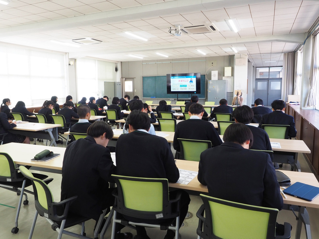 2月13日(金)、1年生の特進コース・進学コースの生徒を対象にオンライン進路講演を行いました。