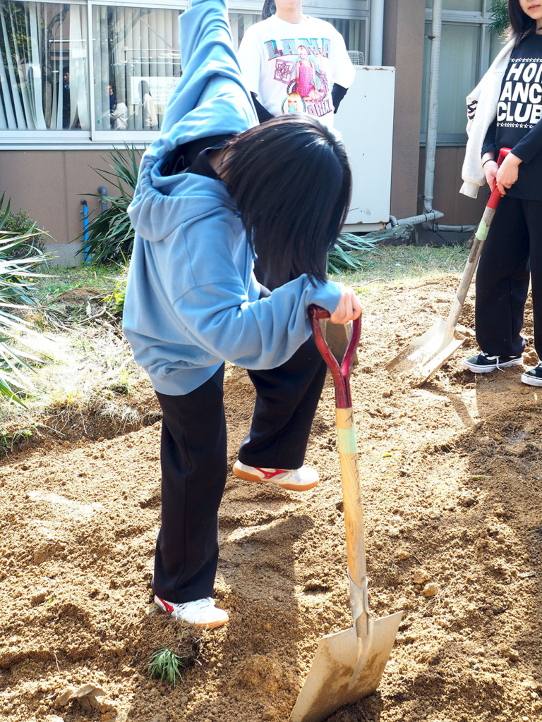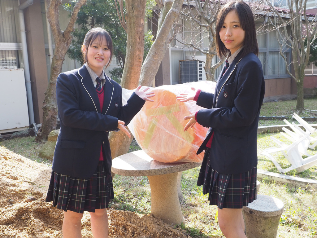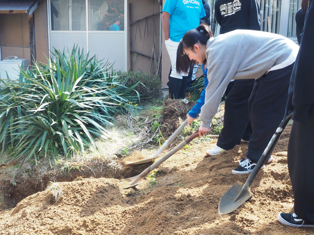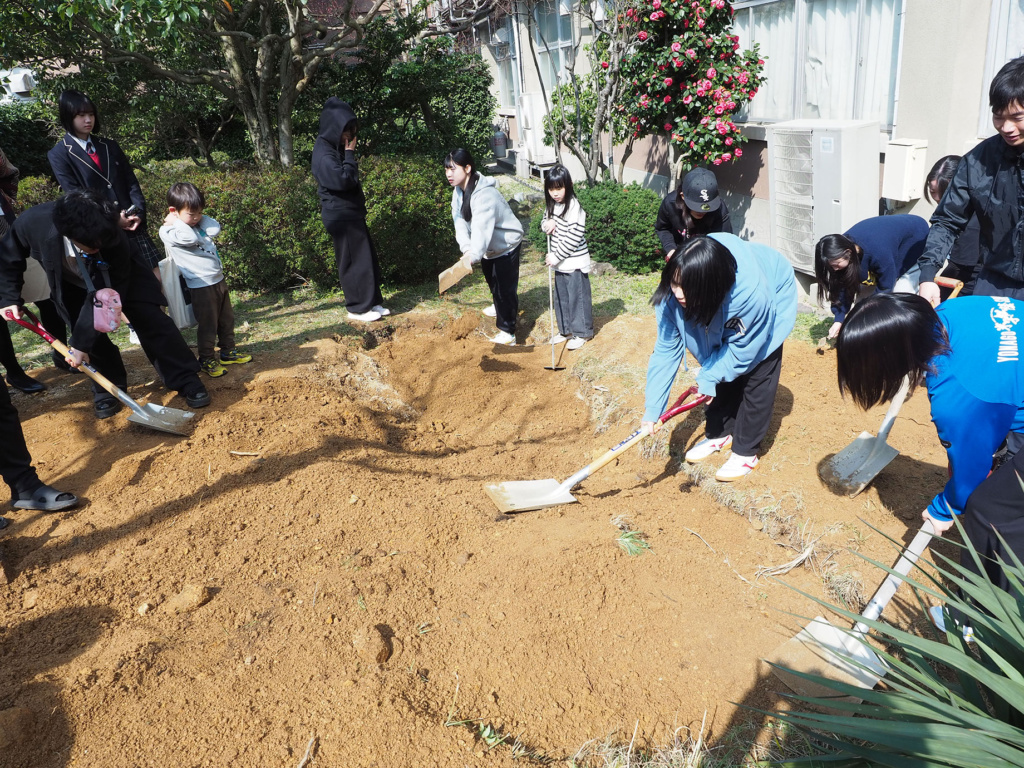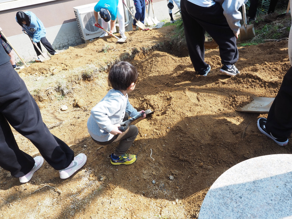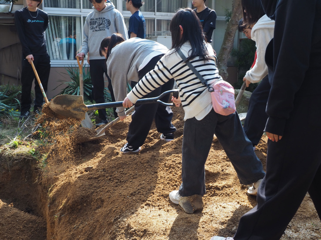 たくさんの生徒と卒業生に見守られ、タイムカプセルは無事に埋められました。